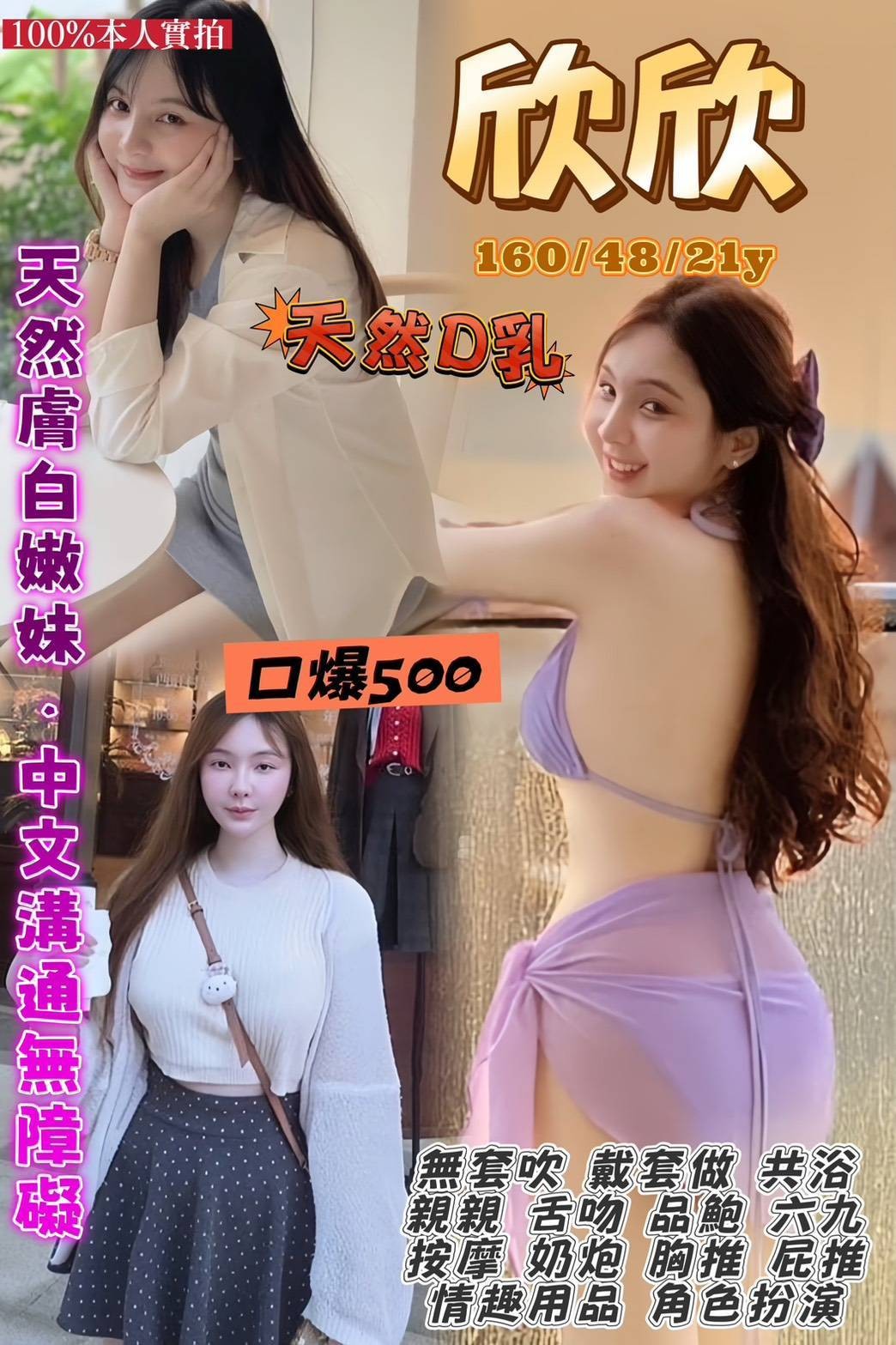 無套吹 戴套做 共浴 親親 舌吻 品鮑 六九 按摩 奶炮 胸推 屁推 絲襪 冰火 自慰秀 角色扮演